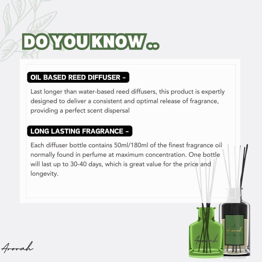* OIL BASED REED DIFFUSER - Last longer than water based reed diffusers and it is engineered to provide the perfect disperse of the scents.