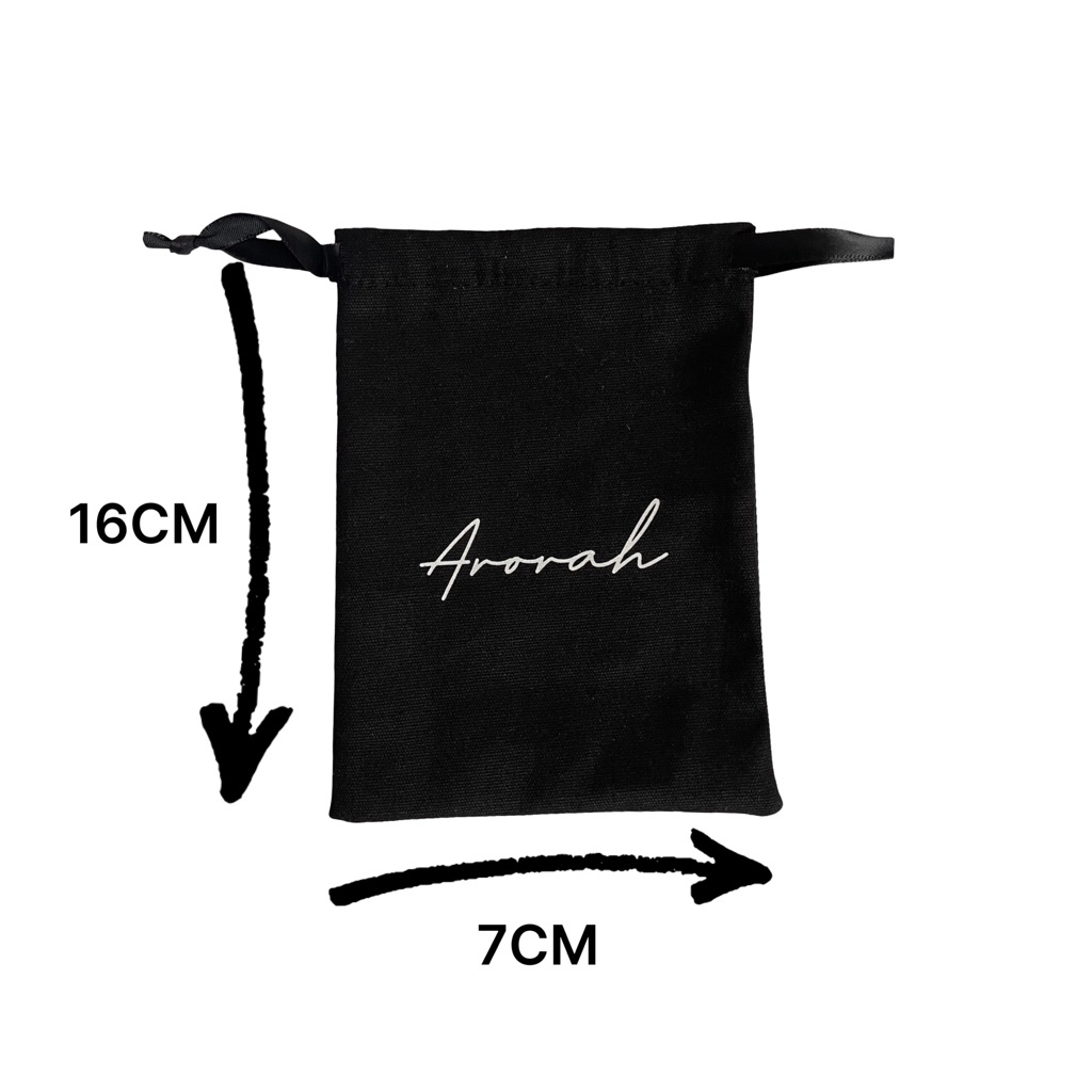Measuring a convenient 16cm by 7cm, the Arorah Drawstring Bag is ingeniously designed to maximize space without compromising on style. The classic drawstring closure allows for easy opening and secure sealing, ensuring all your products remain snugly in place, ready to be presented or transported.